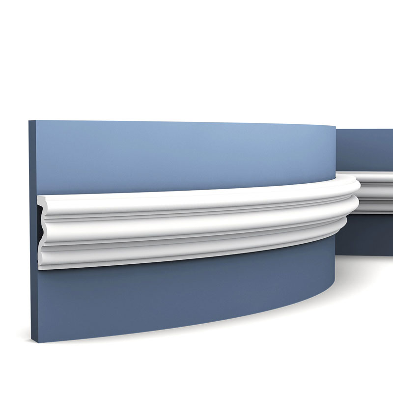 La cornice parete P4025F in poliuretano flessibile é unica nel suo genere e si adatta agli altri profili della linea Autoire (W120, W121, C324) dove esistono delle pareti o soffitti curvi. Il prezzo indicato è da considerarsi al metro.
